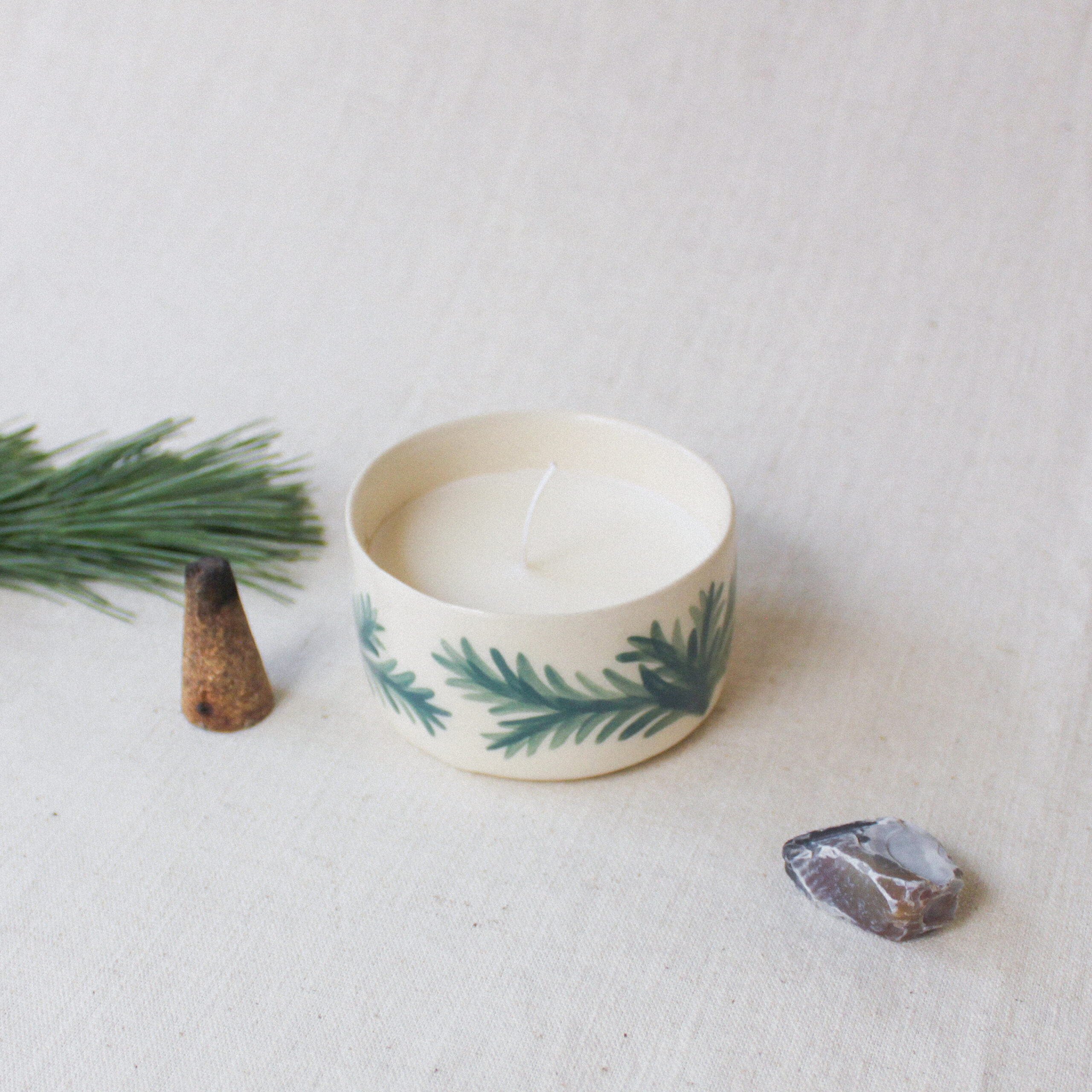 Candle with Pine Bough