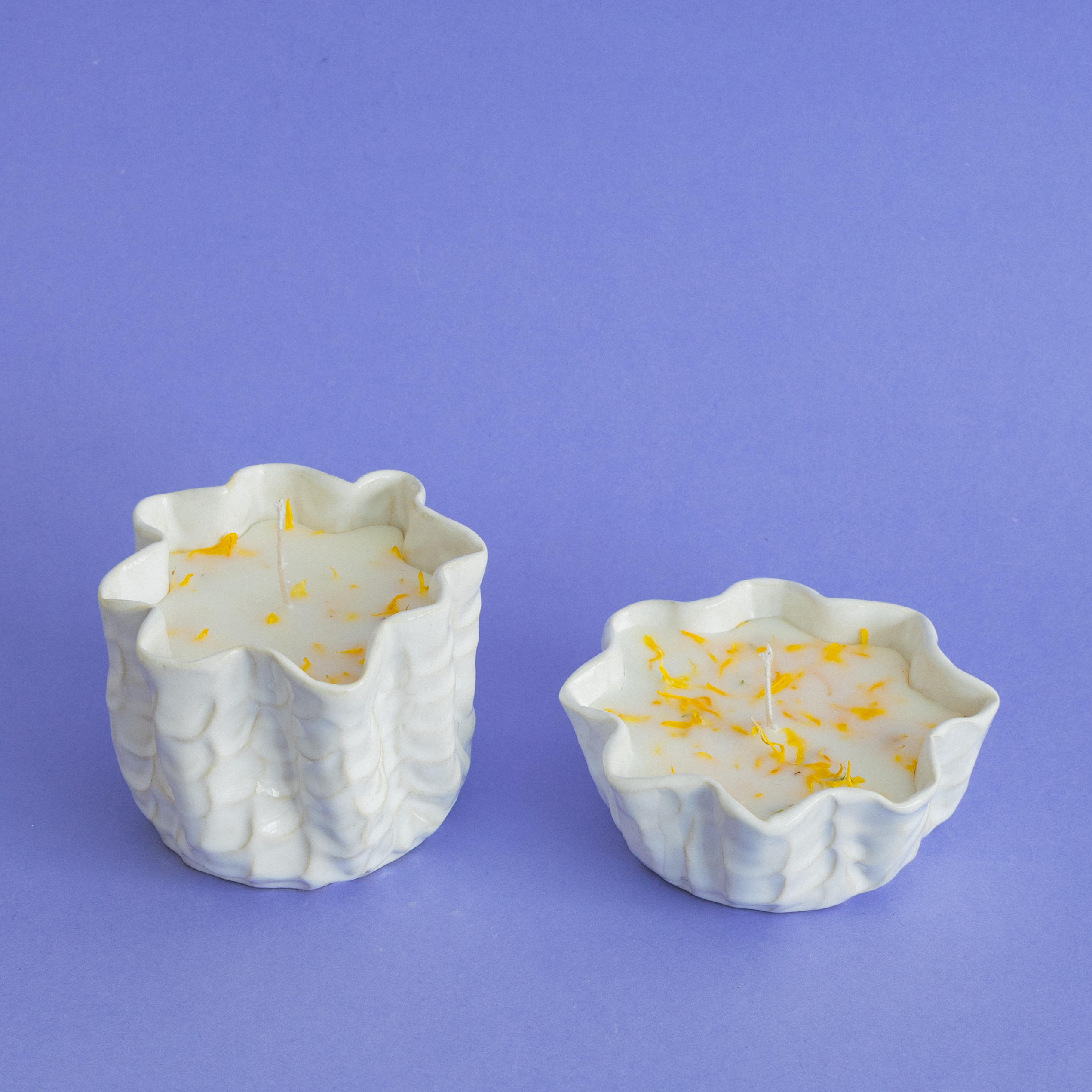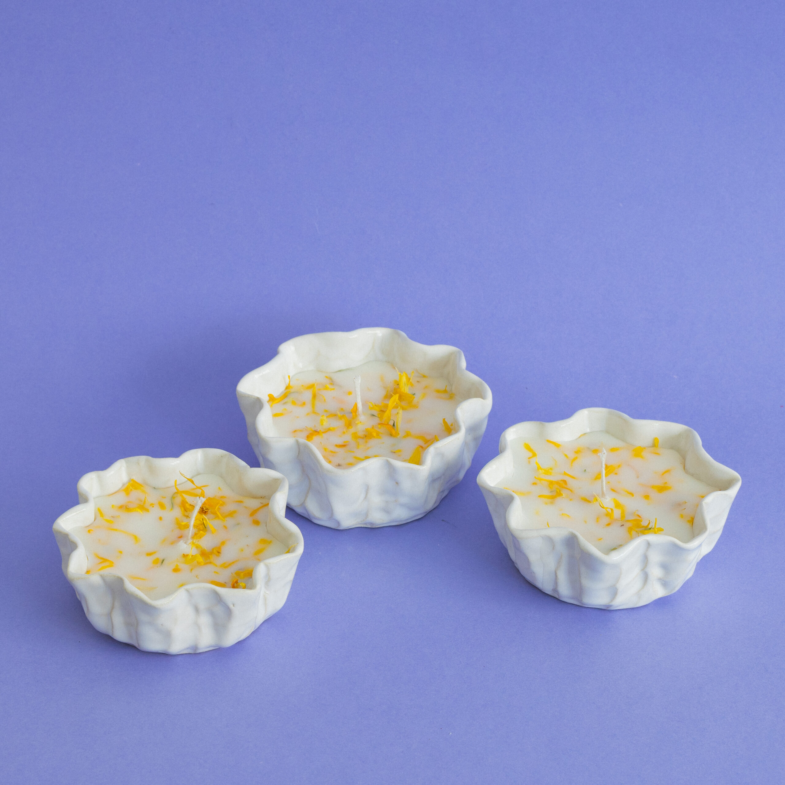 Svíčky jsou vyrobené ze směsi sojového a kokosového vosku. Obsahují přírodní esenci z levandule, citronové trávy a bergamotu. Ve vrchní části vosku je sušený měsíček lékařský. Každý kus je ručně vyrobený, proto se jednotlivé produkty mohou nepatrně lišit.