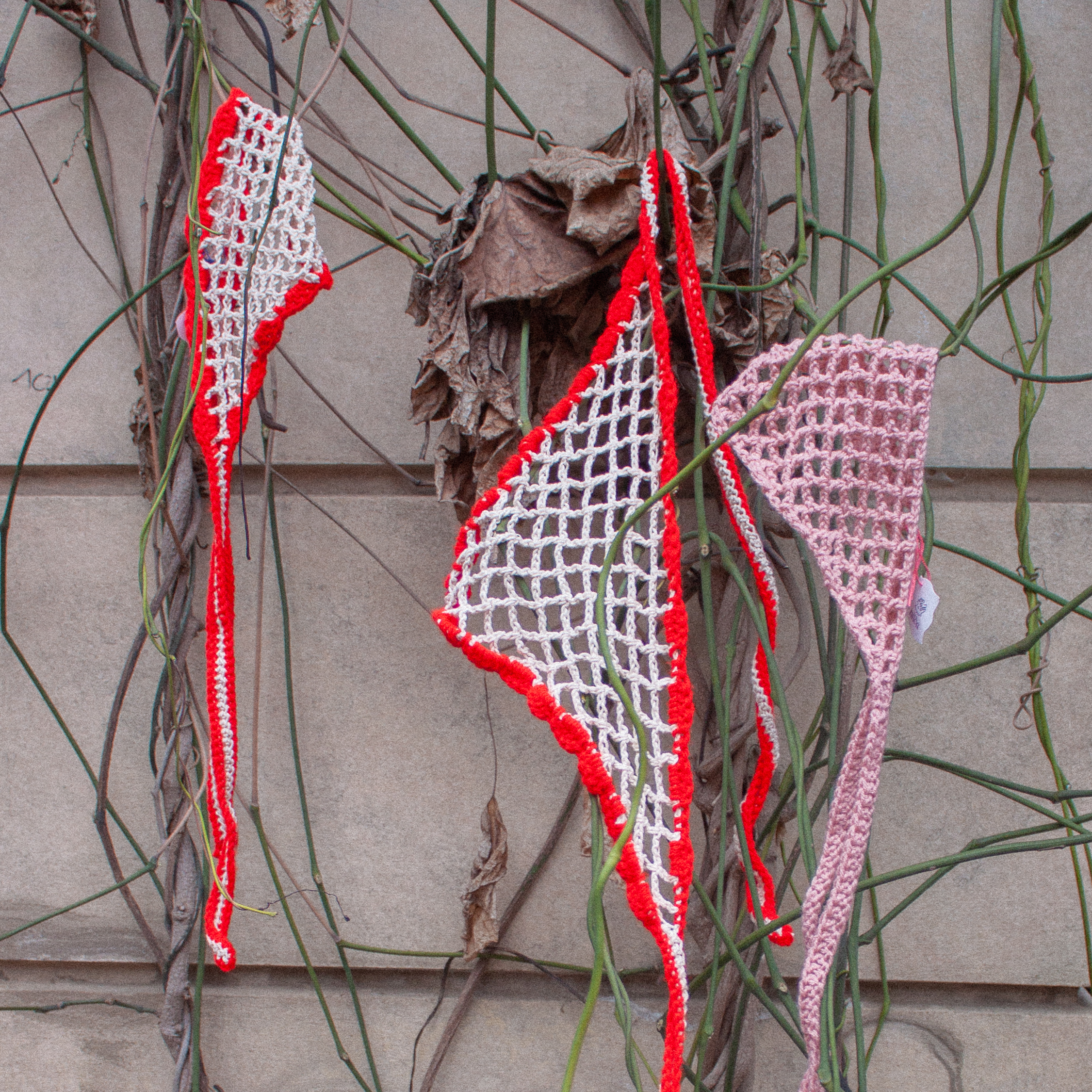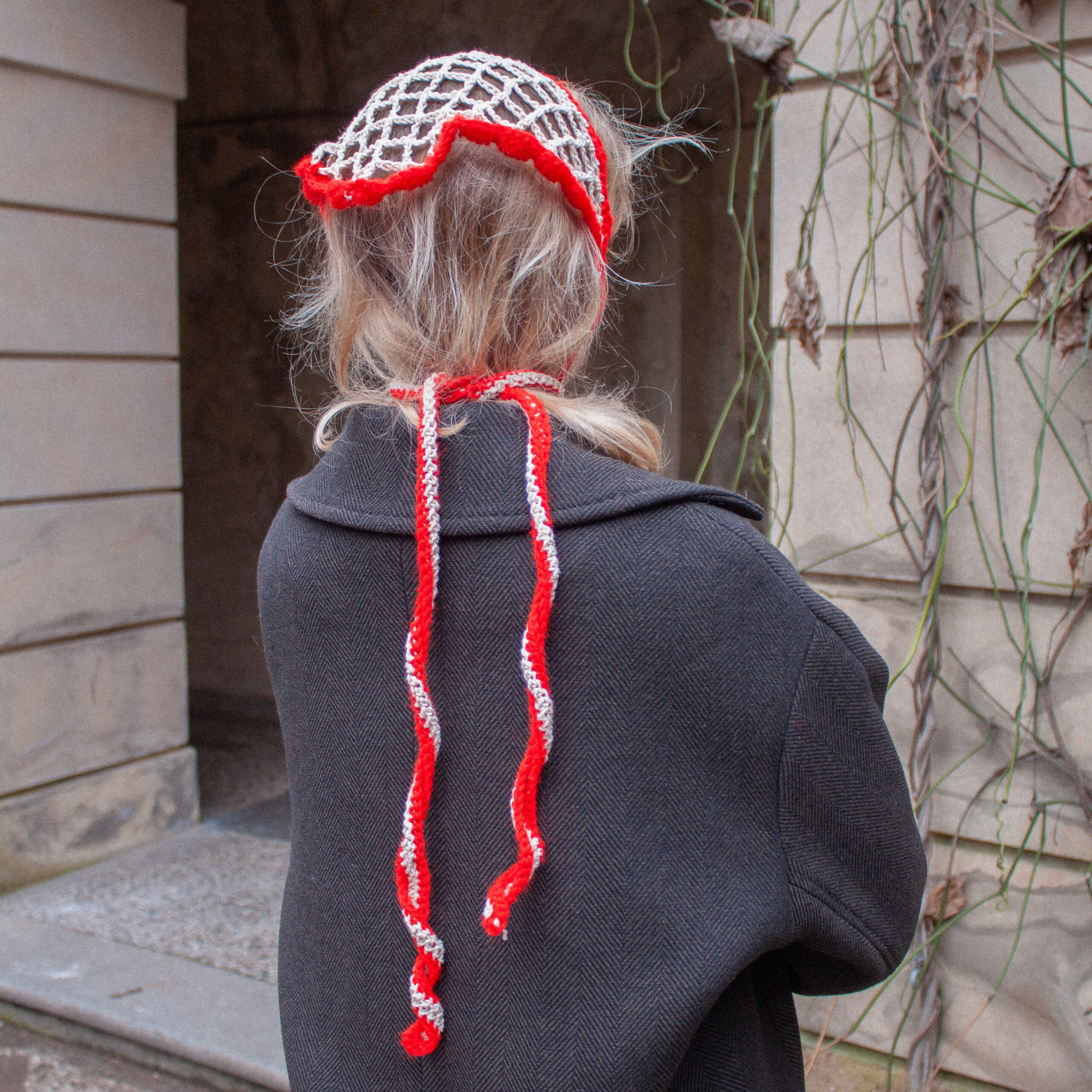 Ručně háčkovaná šátek z upcyklovaných materiálů.