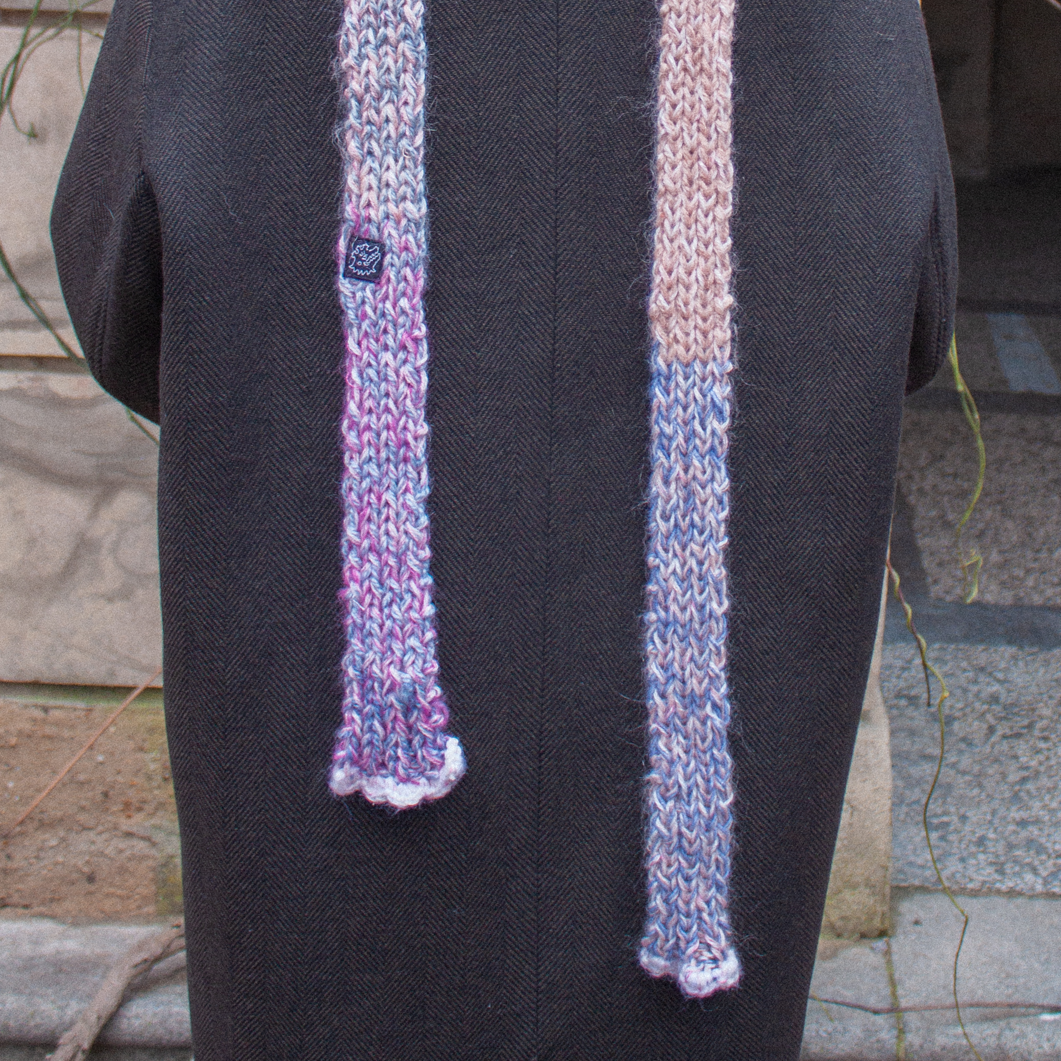 Ručně háčkovaná šála z upcyklovaných materiálů.