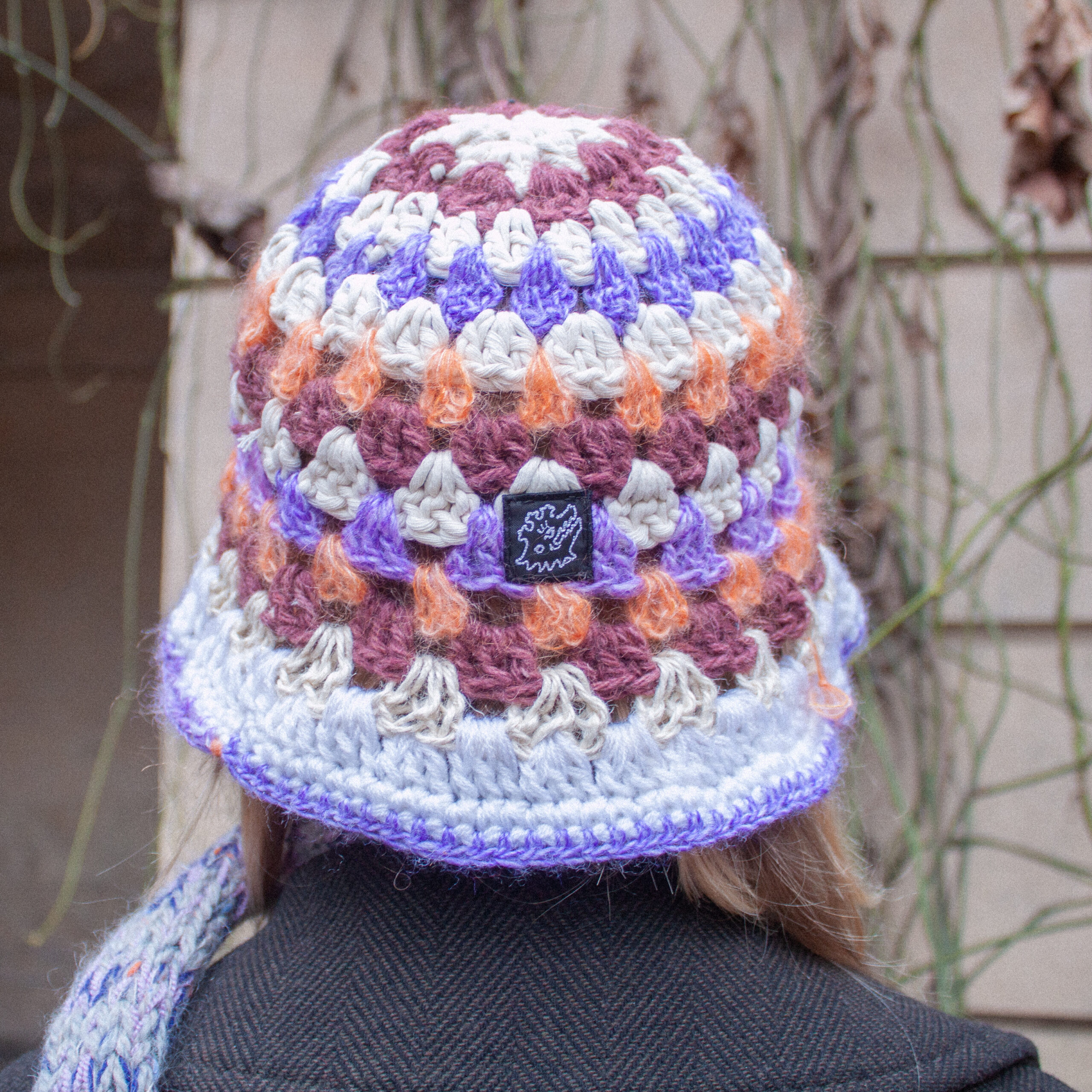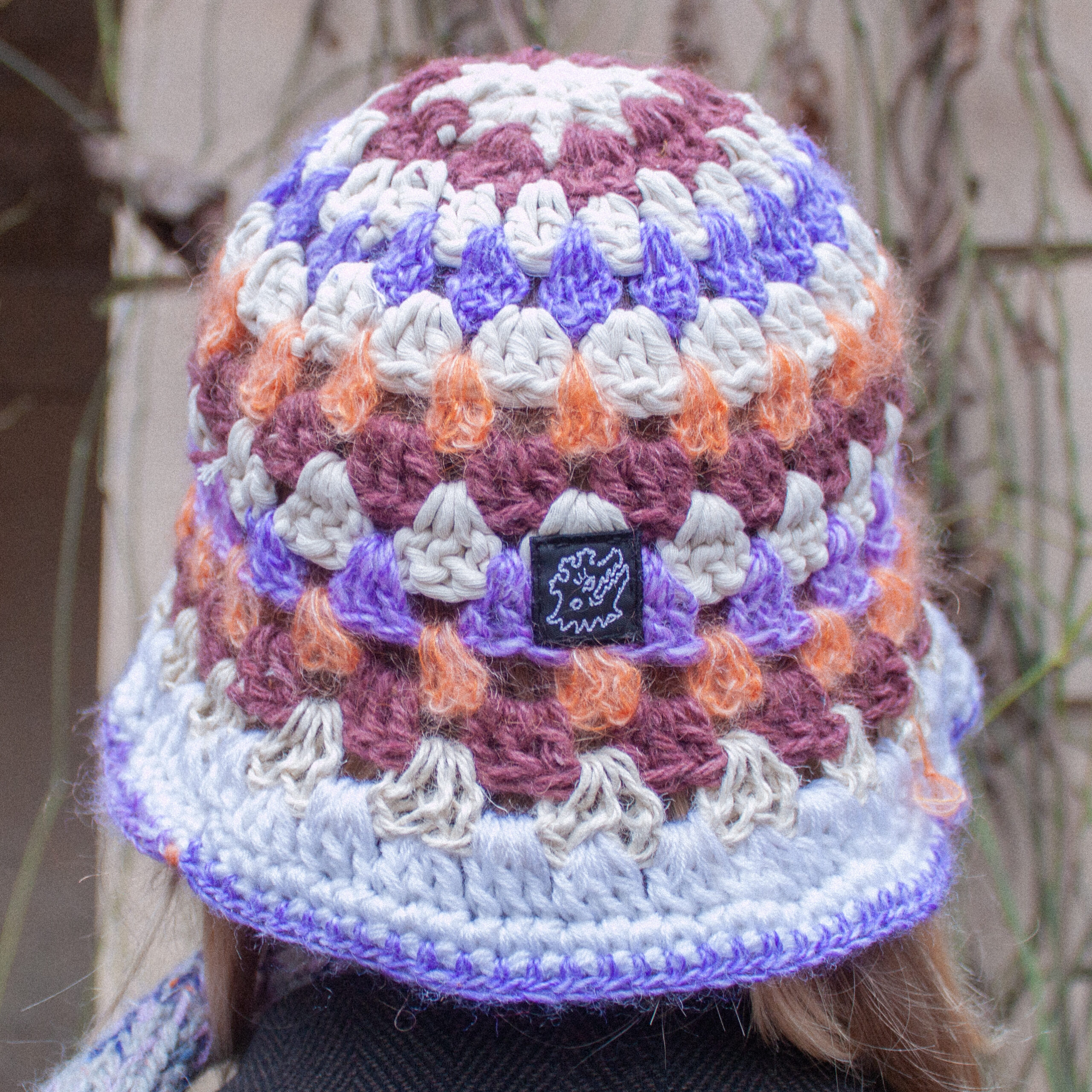 Ručně háčkovaná klobouček z upcyklovaných materiálů.