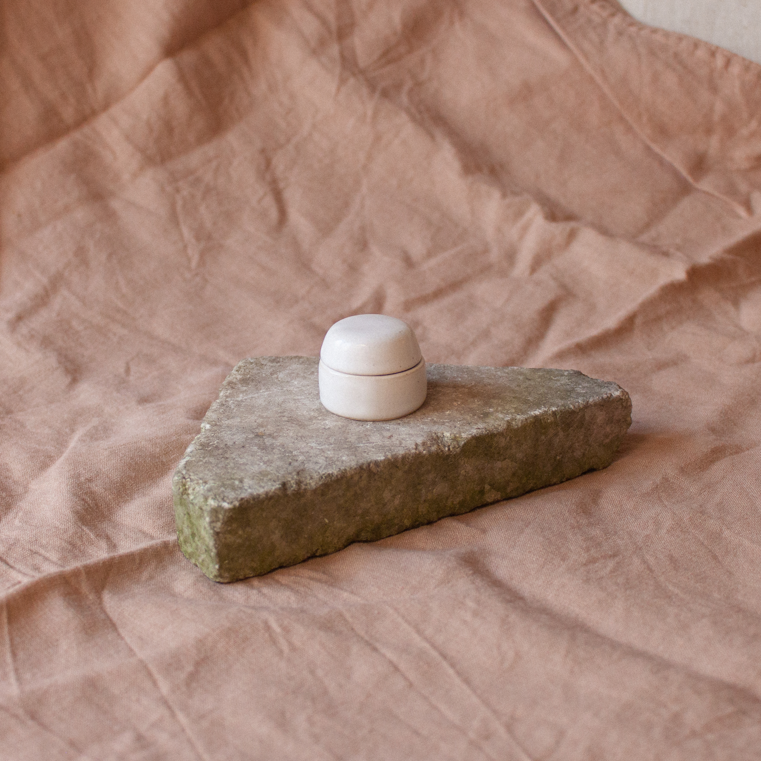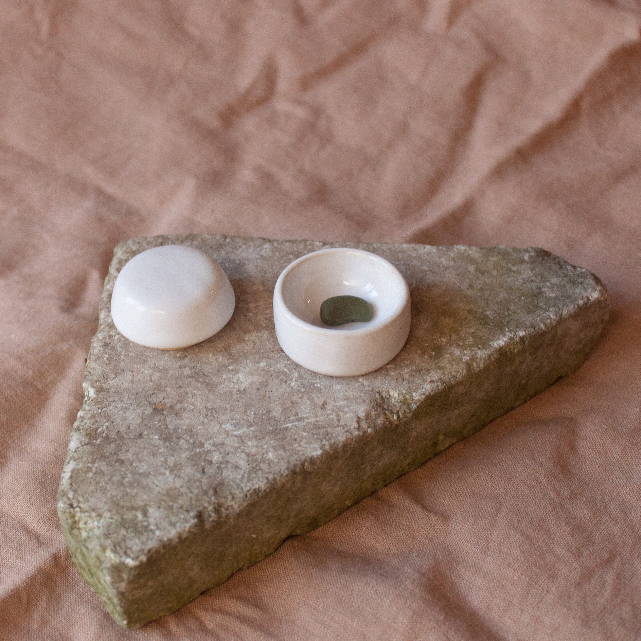 Točená malá šperkovnice na prstýnky, glazovaná bílou glazurou.