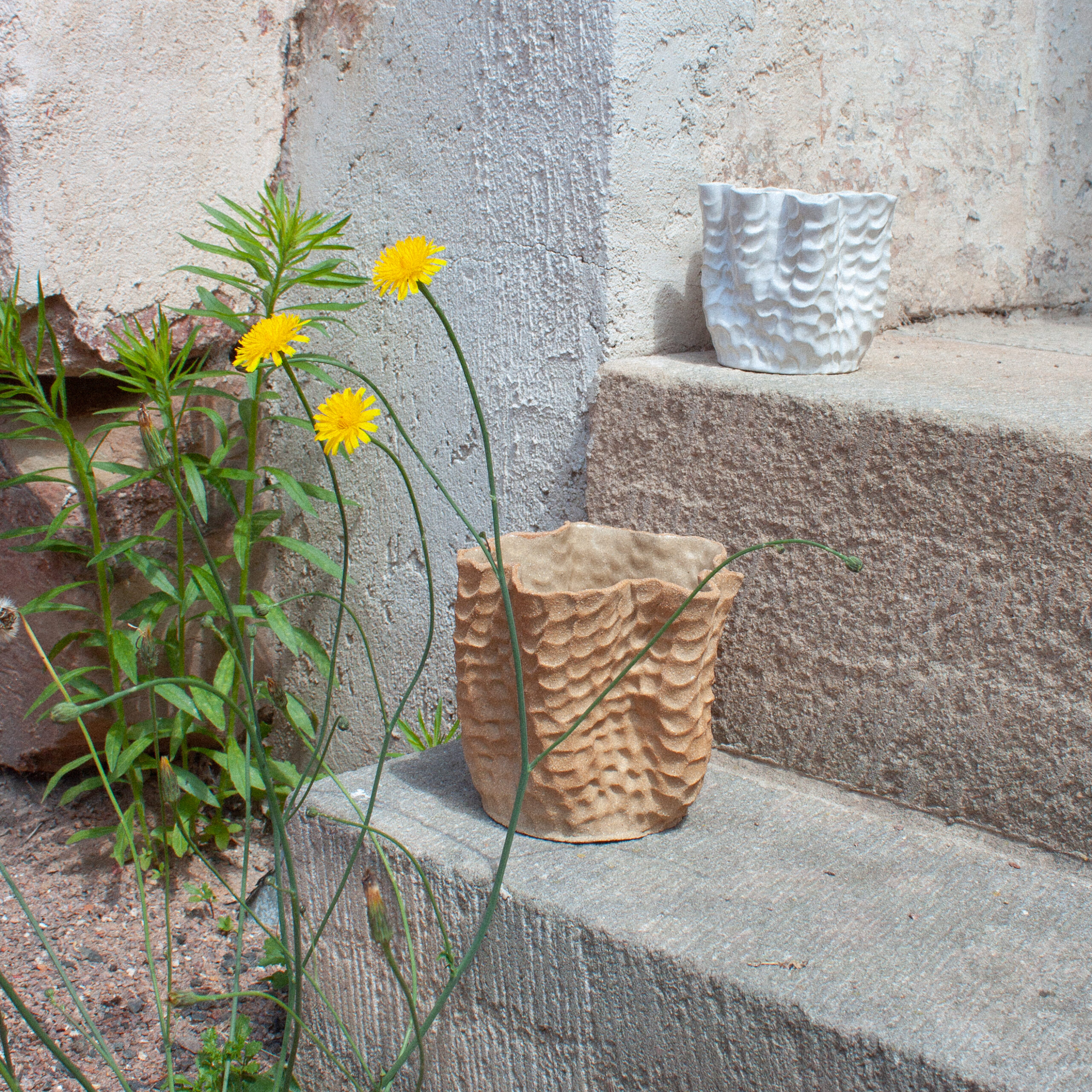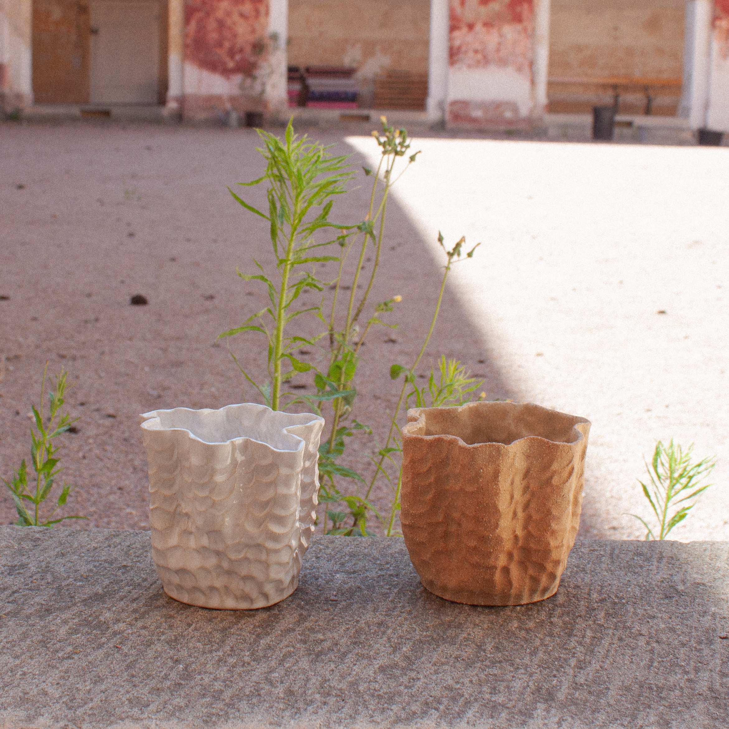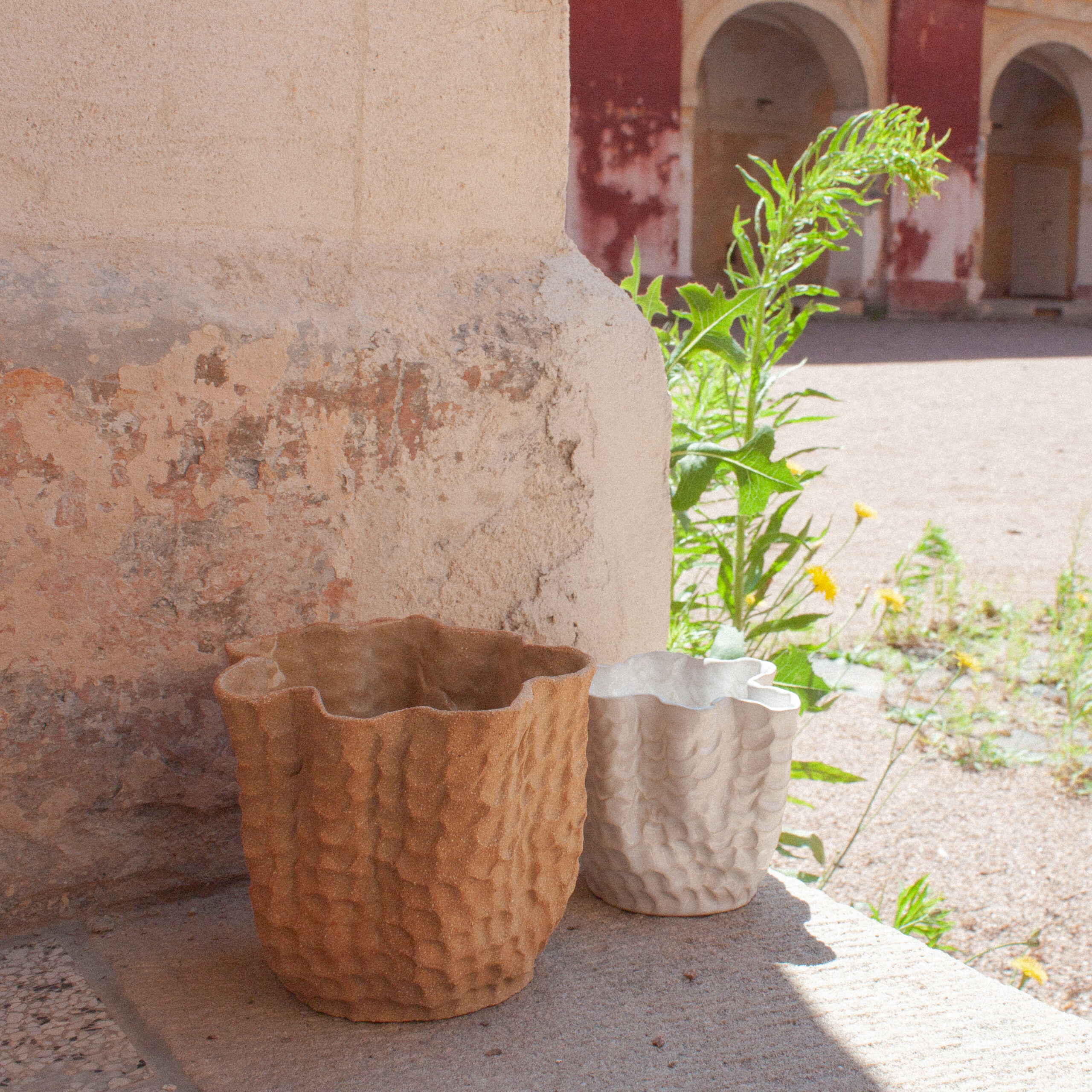 Šamotový obal na květináč, uvnitř glazovaný transparentní glazurou, je určený pro rostliny v květináči s průměrem 6 cm.