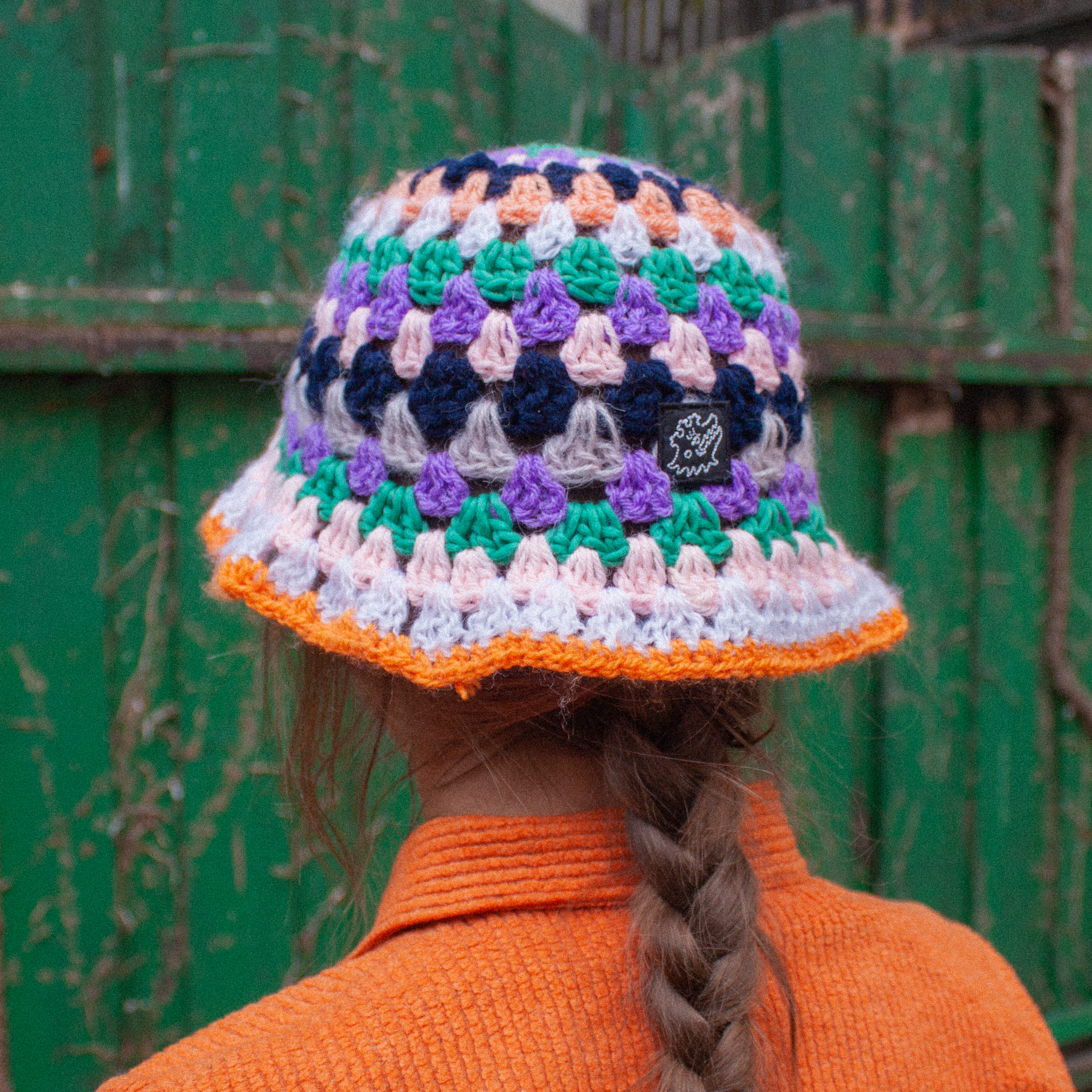 Ručně háčkovaná klobouček z upcyklovaných materiálů.