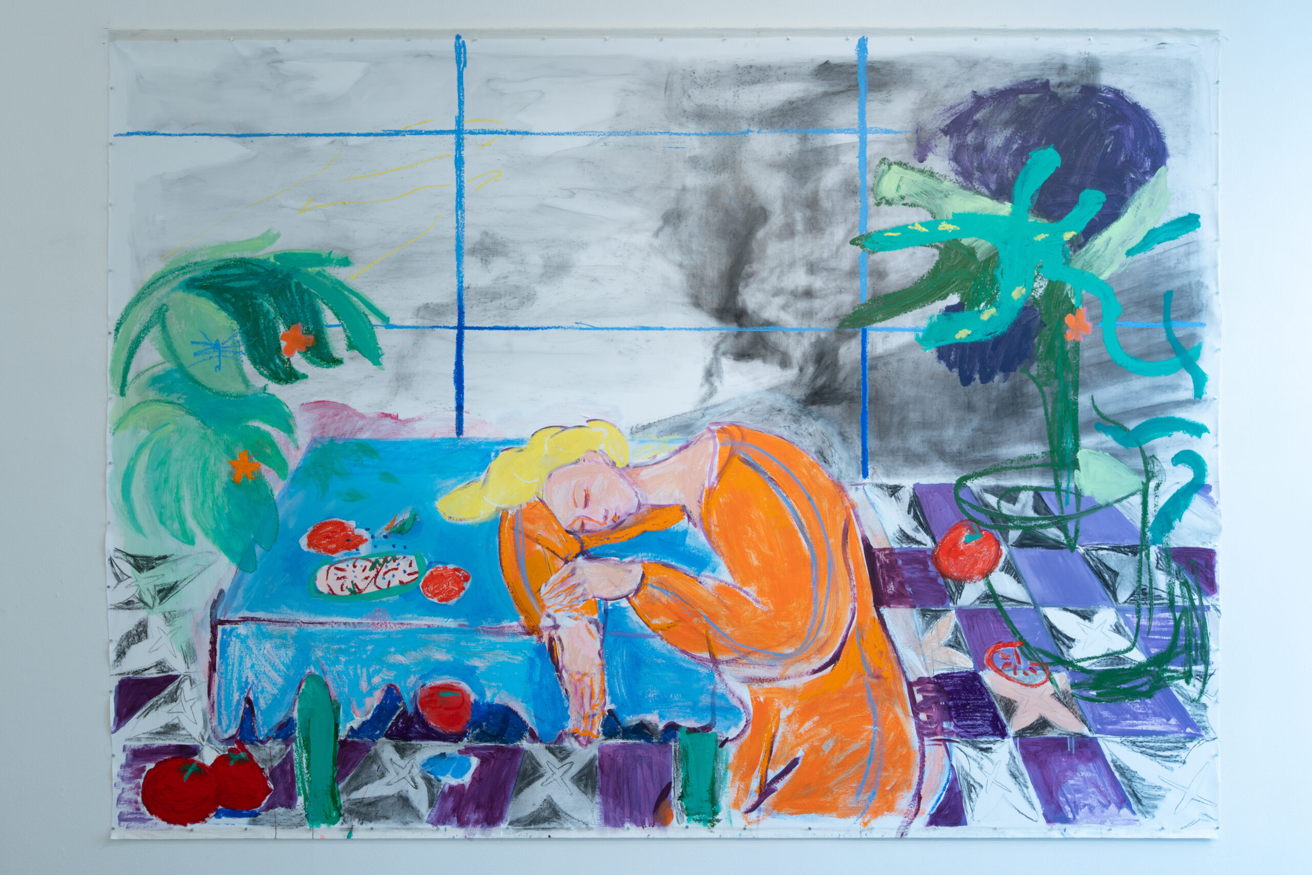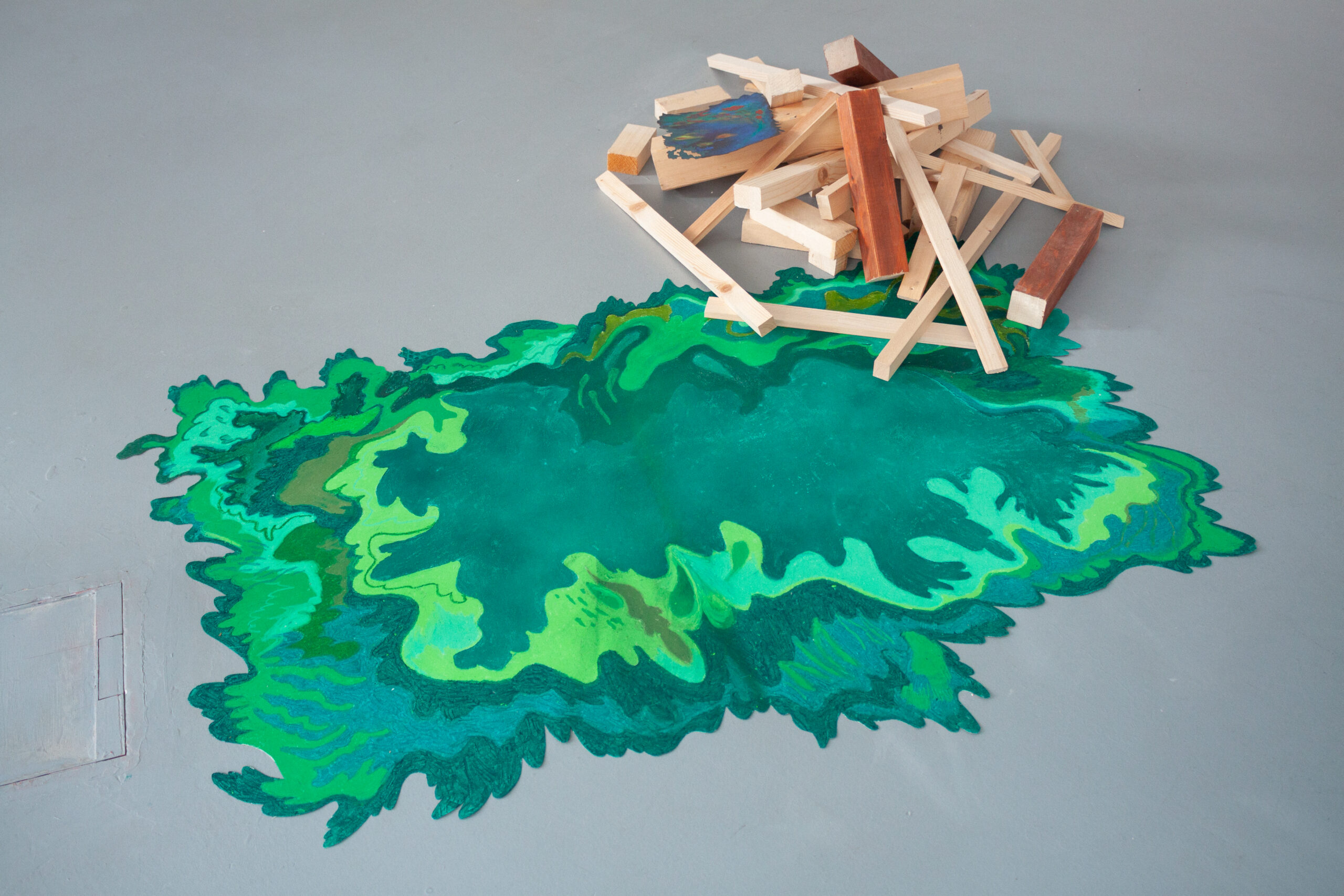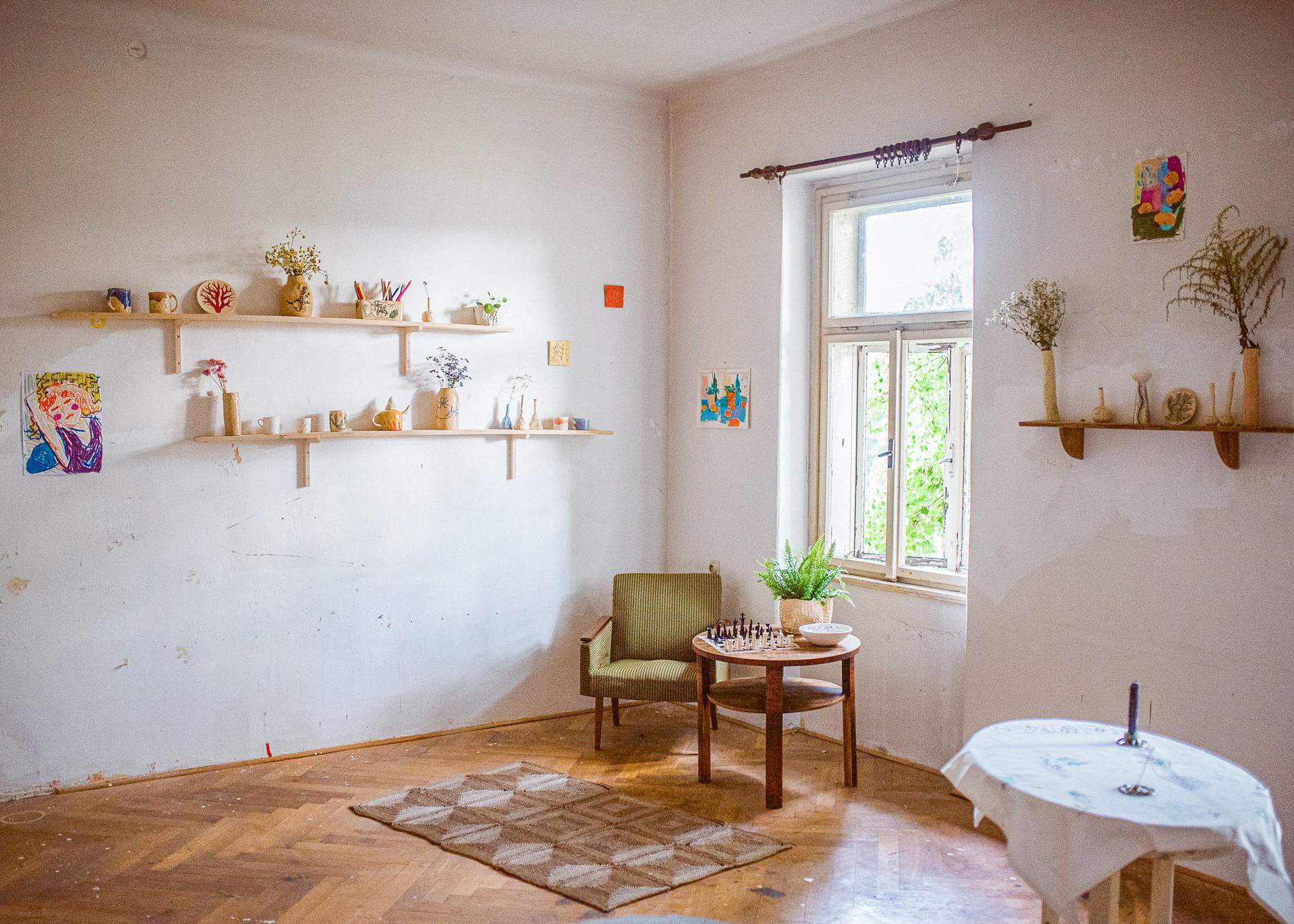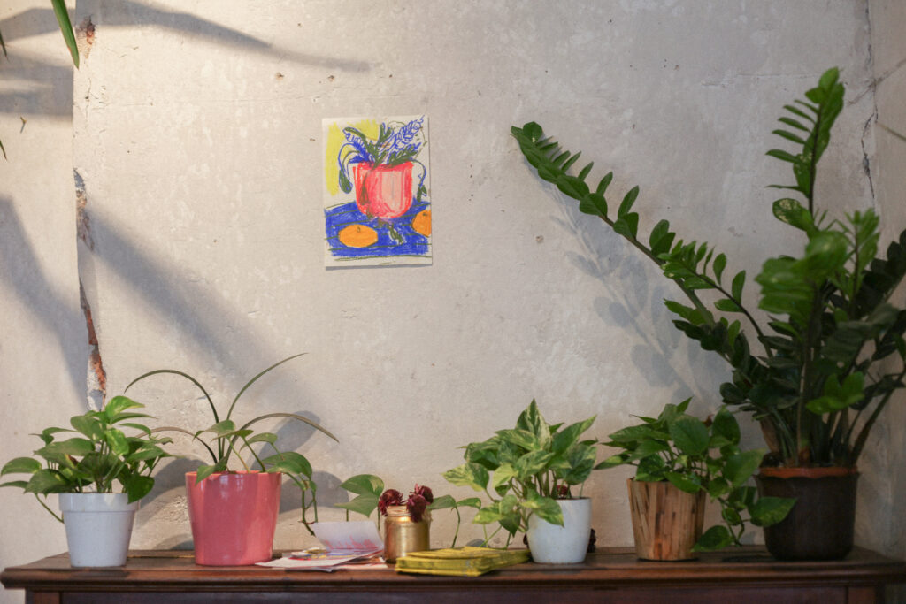 Barbora do výstavy vnáší lehce romantickou představu kolektivu, který žije jako postavy z jejích kreslených světů – napůl lidé, napůl bytosti z přírody, obývající příběhy o péči, samotě, lásce i tichém vzdoru. V těchto světech nejsou ostré hranice mezi člověkem, zvířetem a rostlinou, stejně jako volným časem, tvorbou a prací. Hilda se tu proměňuje ve společenství, kde je možné být plačkou, hledačkou pokladů, poustevnicí i květinou – a kde se umění stává způsobem existence, sdíleným rytmem i útočištěm.