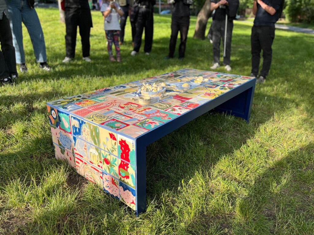 Stůl najdete v Bezručových sadech na Praze 10. Každé posezení, rozhovor či náhodné setkání se může stát další vrstvou příběhu, který stůl postupně shromažďuje. Proto se neváhejte u něj zastavit a stát se součástí jeho paměti.